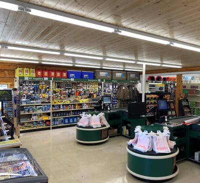 The Ninilchik Three Bears is slightly larger than a convenience store yet a bit smaller than a full-sized grocery store. It offers a diverse range of convenience and grocery items, including meat, fresh produce, sundries, frozen foods, deli items, hot concessions, hardware, seasonal goods, office supplies, health and beauty products, pet food and supplies, and over-the-counter medications. Additionally, the store houses a Three Bears Outpost Express Sporting Goods department, providing a variety of hunting gear, an extensive selection for fishing enthusiasts, and outdoor and camping products.