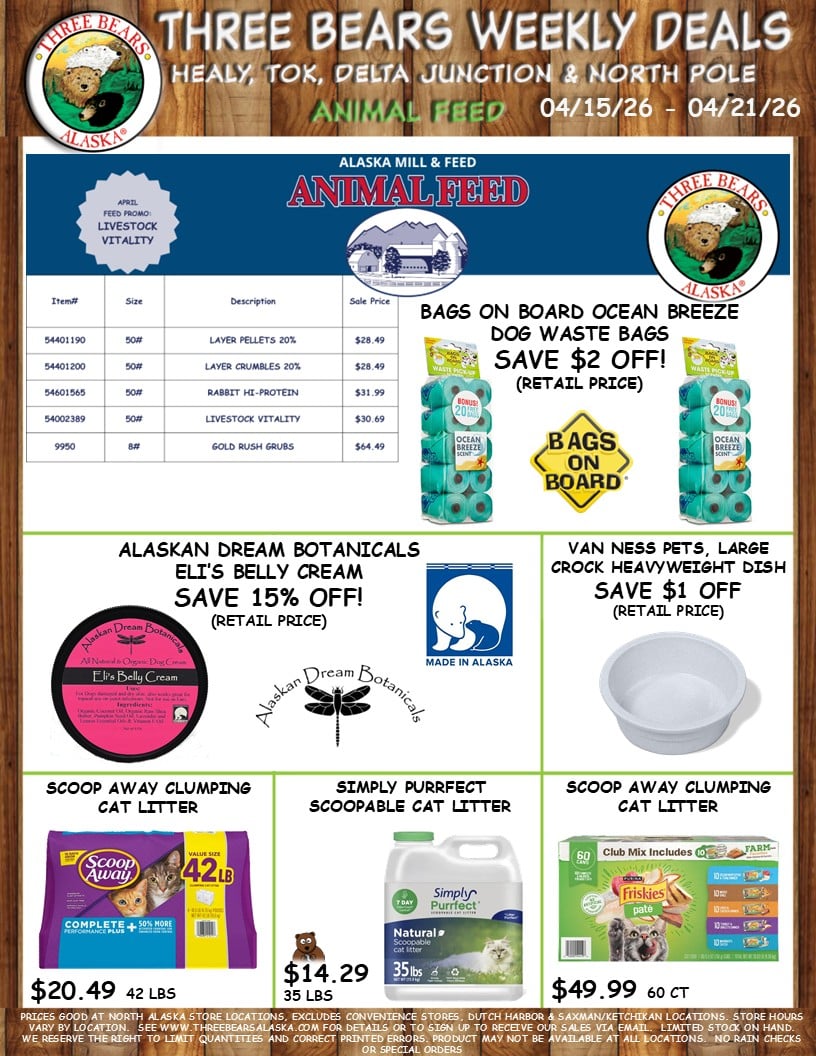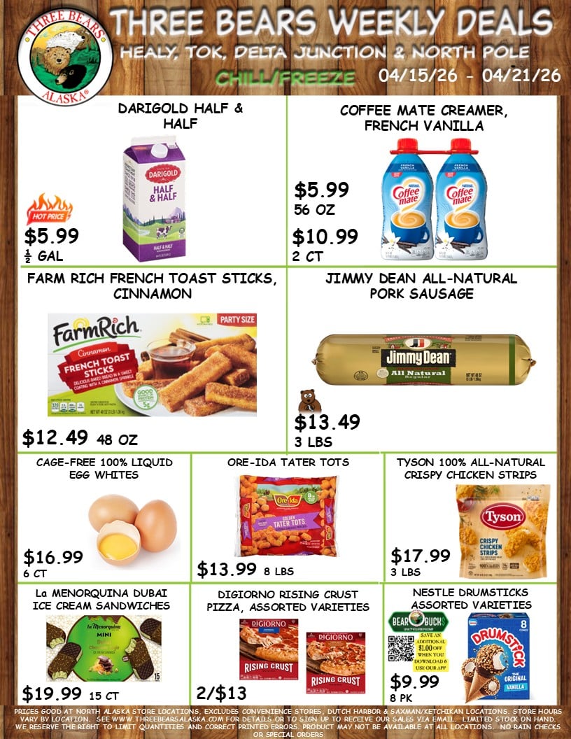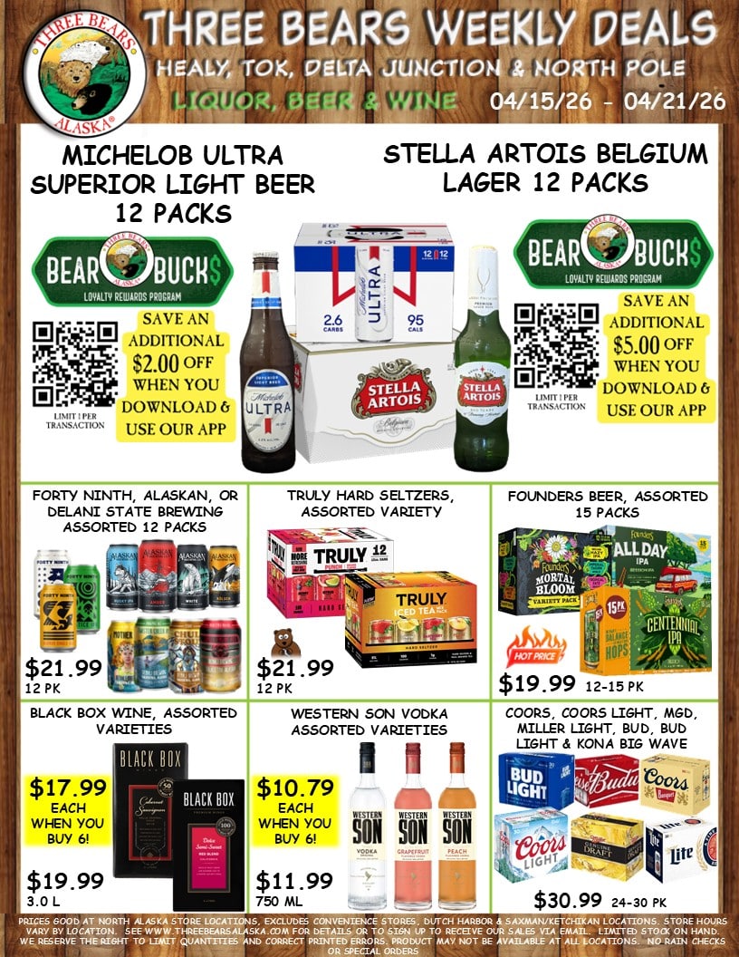 4 Three Bears Alaska Weekly Sales Healy, Tok, Delta Junction & North Pole Locations